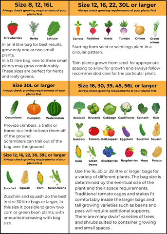 Wondering what size Root Pouch bag to suit your growing needs?Whether it's ornamentals or food we have the size that will be perfect for your garden!