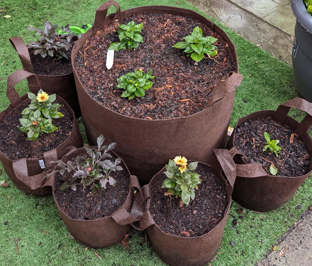The Root Pouch bags are perfect replacements for heavy or bulky ceramic pots , are portable, make great storage solutions and ideal for small space gardens. Other inferior bags on the market are made of geotextile or new plastic.